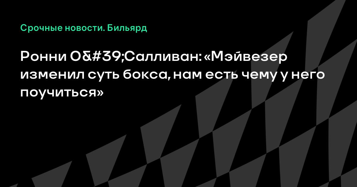 Бокс – это плата за шоу, за просмотры, и если бы снукер был такой, то я был бы в состоянии командовать и диктовать больше. Флойд в боксе и Тайгер Вудс в гольфе изменили суть их спорта, и я думаю, что снукер может многому научиться у них. Но в нашем спорте существуют 128 игроков, и каждый из них делает одно и то же. В этом смысле, я бы, наверное, предпочел бы быть боксером», — сказал О’Салливан.