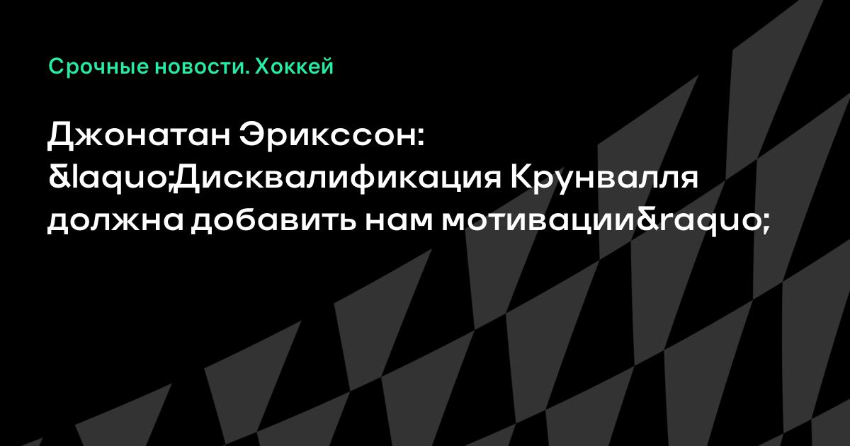 Джонатан Эрикссон: «Дисквалификация Крунвалля должна добавить нам мотивации»