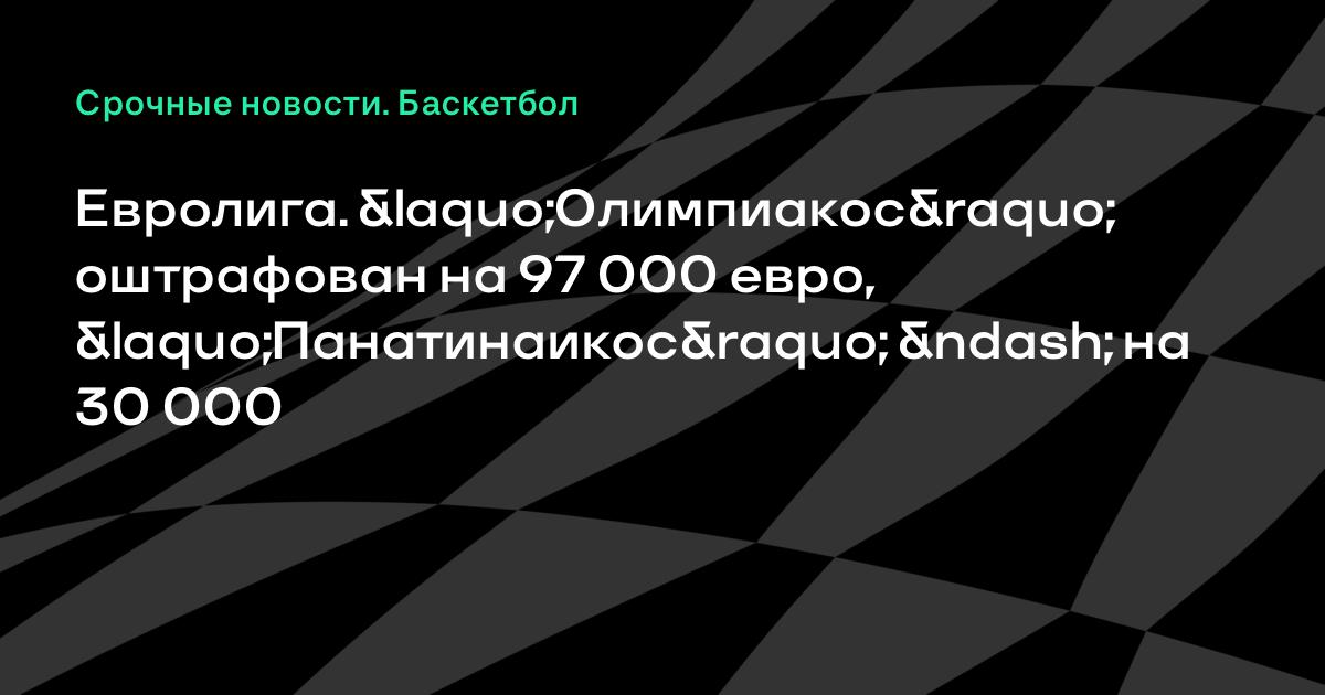 Евролига. «Олимпиакос» оштрафован на 97 000 евро, «Панатинаикос» – на 30 000
