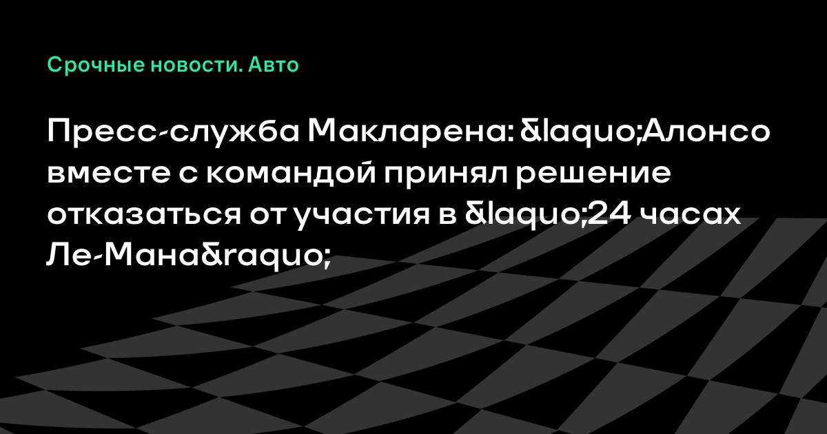 «Решение об отказе от участия в «24 часа Ле-Мана» Фернандо принимал вместе с командой», – цитирует пресс-службу «Макларена» Inautonews.