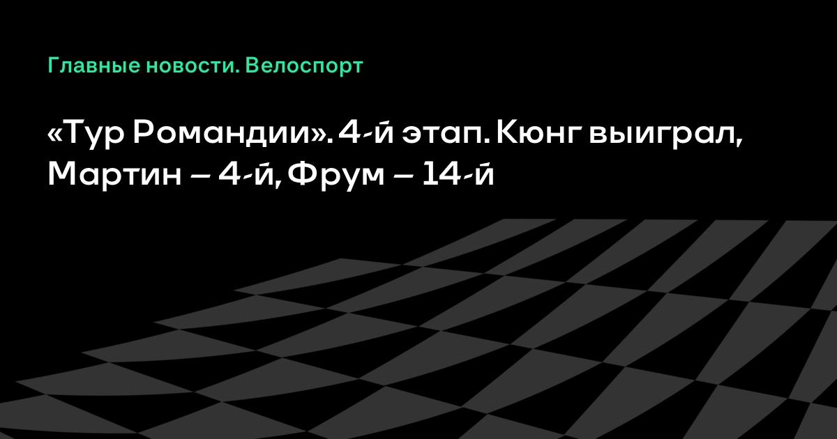 Швейцарский велогонщик Штефан Кюнг сегодня победил на 4-м этапе многодневки «Тур Романдии».