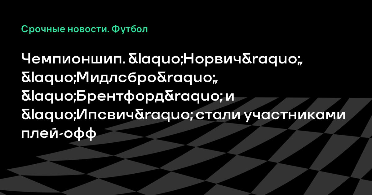 Чемпионшип. «Норвич», «Мидлсбро», «Брентфорд» и «Ипсвич» стали участниками плей-офф