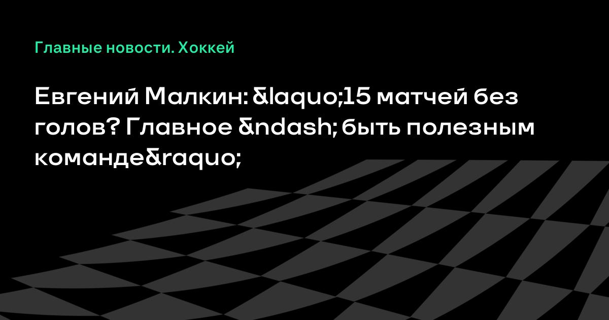 Что делать, когда не забивал 15 матчей? Тренироваться надо, все идет от тренировок. Да и голы – не самое главное, главное – быть полезным команде», – сказал Малкин.