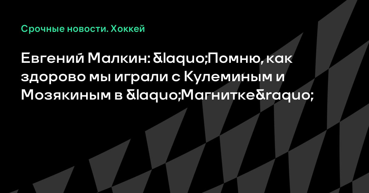 Евгений Малкин: «Помню, как здорово мы играли с Кулеминым и Мозякиным в «Магнитке»