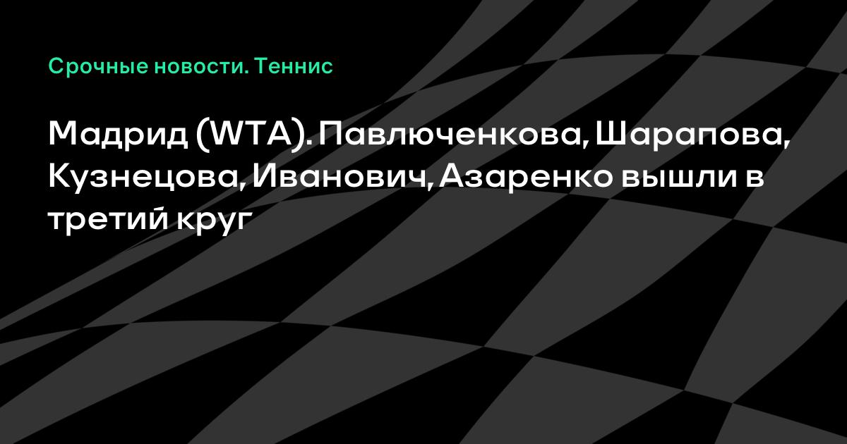 Мадрид (WTA). Павлюченкова, Шарапова, Кузнецова, Иванович, Азаренко вышли в третий круг