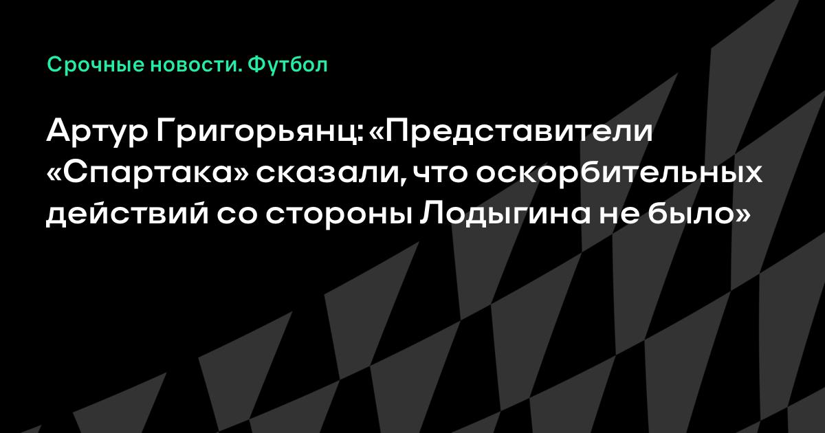 Артур Григорьянц: «Представители «Спартака» сказали, что оскорбительных действий со стороны Лодыгина не было»