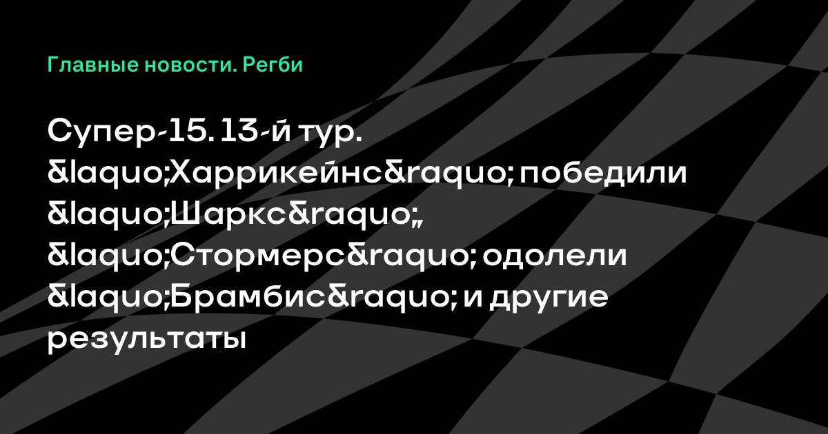 Сегодня пройдут матчи 13-го тура регбийного турнира Супер-15. «Харрикейнс» победили «Шаркс» (32:24), «Стормерс» одолели «Брамбис» (25:24).