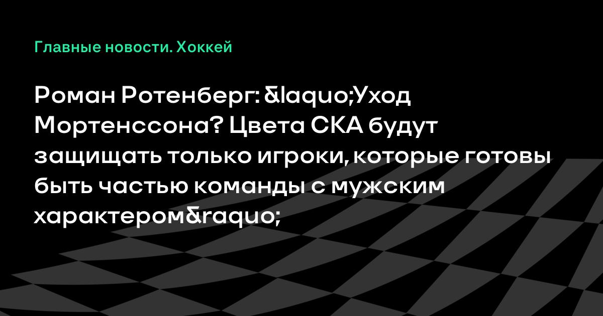 Роман Ротенберг: «Уход Мортенссона? Цвета СКА будут защищать только игроки, которые готовы быть частью команды с мужским характером»