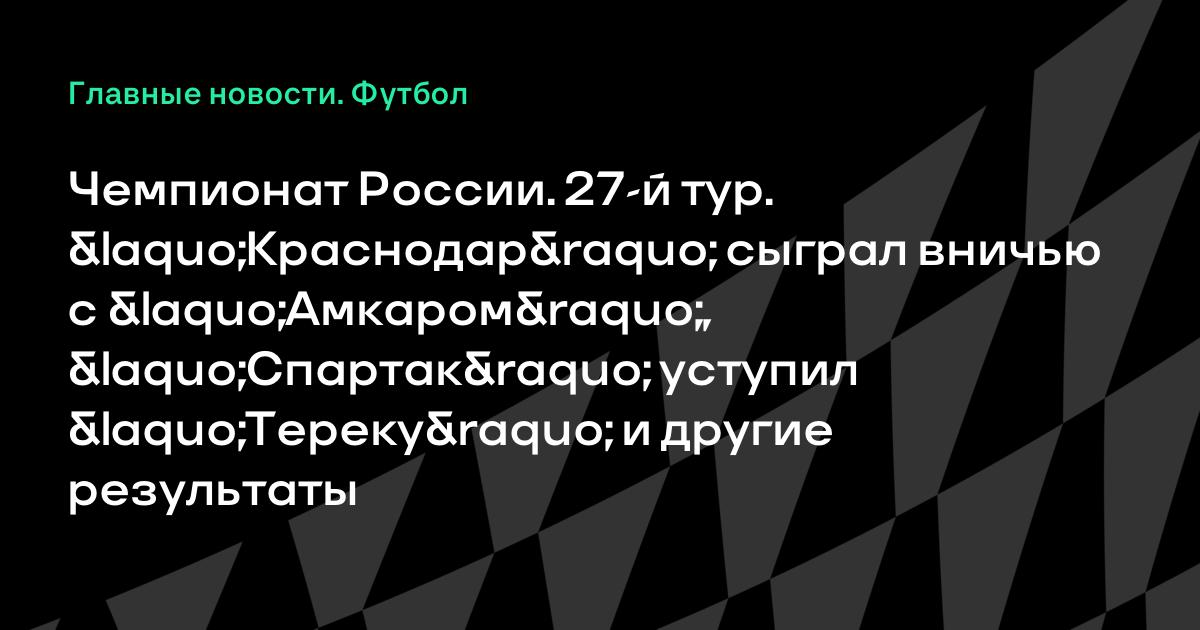Чемпионат России. 27-й тур. «Краснодар» сыграл вничью с «Амкаром», «Спартак» уступил «Тереку» и другие результаты