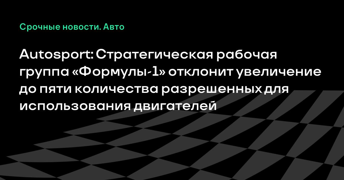 Autosport: Стратегическая рабочая группа «Формулы-1» отклонит увеличение до пяти количества разрешенных для использования двигателей