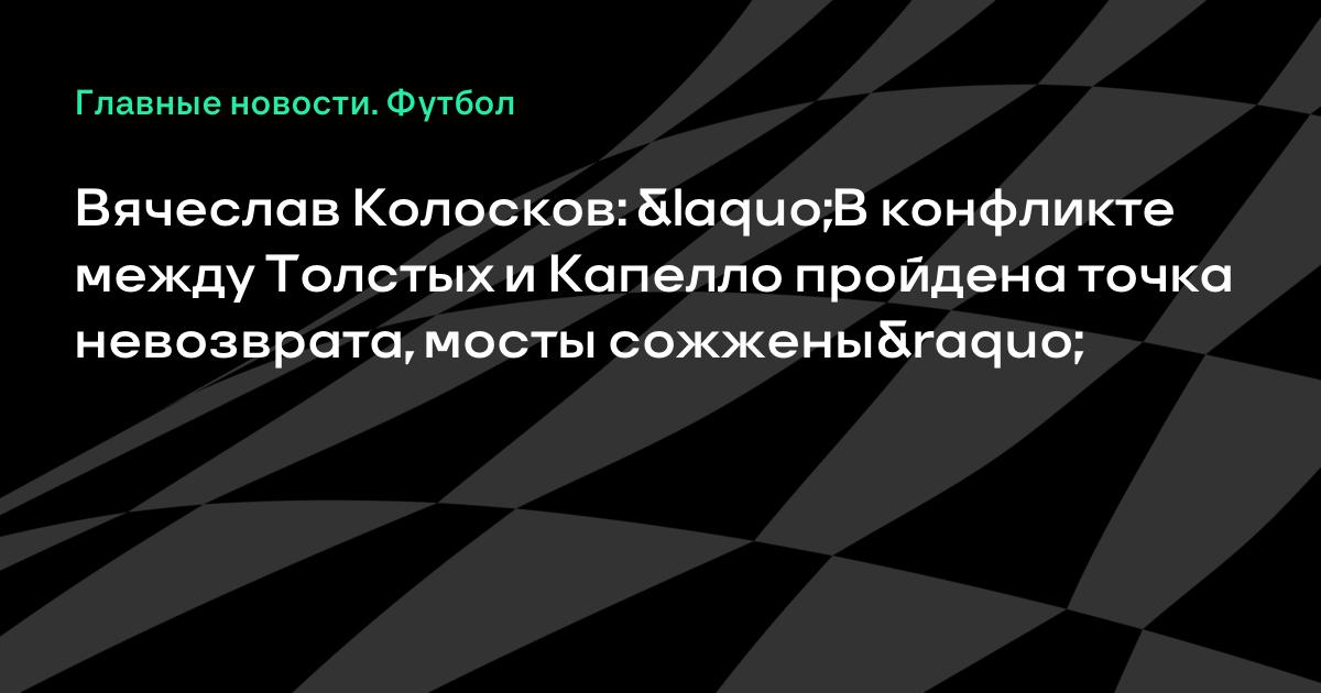 Вячеслав Колосков: «В конфликте между Толстых и Капелло пройдена точка невозврата, мосты сожжены»