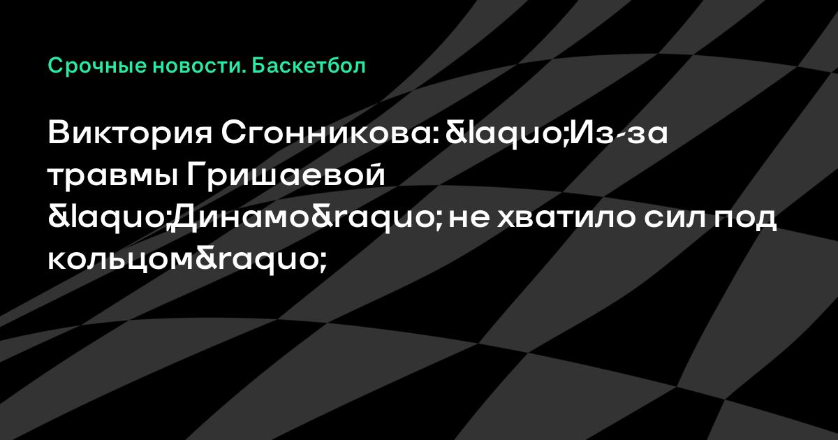 Но если бы она была под кольцом, это позволило бы сохранить больше сил другим игрокам, таким как Ирина Осипова и Ннемкади Огвумике. Не хочу сказать, что наш состав из-за травмы Гришаевой стал слабее, просто не хватило, наверное, ротации и сил под кольцом», – передает слова Виктории Сгонниковой «Р-Спорт».