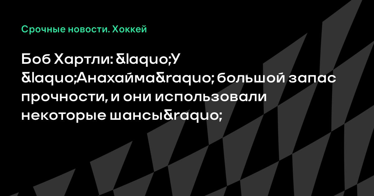 Боб Хартли: «У «Анахайма» большой запас прочности, и они использовали некоторые шансы»