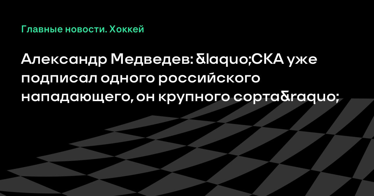 Александр Медведев: «СКА уже подписал одного российского нападающего, он крупного сорта»