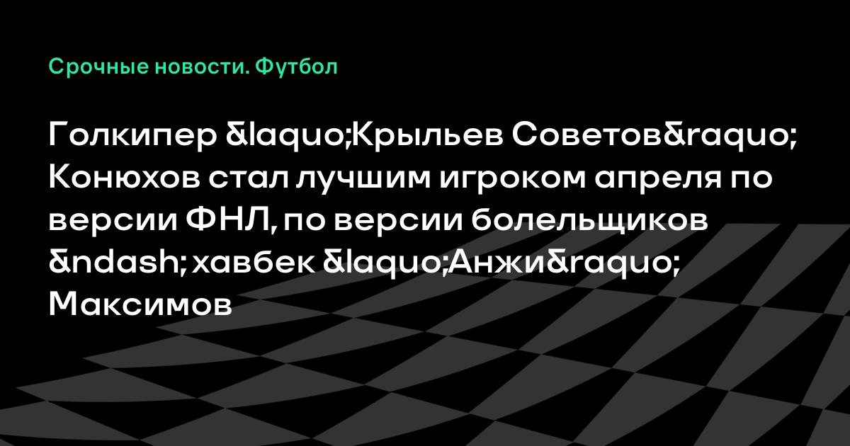 Голкипер «Крыльев Советов» Конюхов стал лучшим игроком апреля по версии ФНЛ, по версии болельщиков – хавбек «Анжи» Максимов