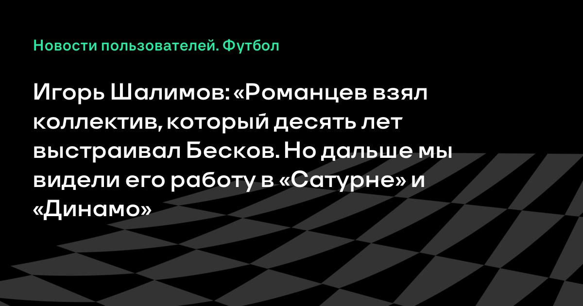 Игорь Шалимов: «Романцев взял коллектив, который десять лет выстраивал Бесков. Но дальше мы видели его работу в «Сатурне» и «Динамо»