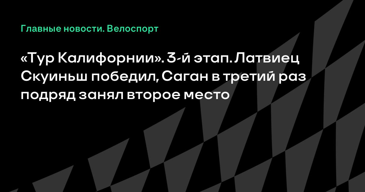 Сегодня прошел третий этап многодневки «Тур Калифорнии». Победу одержал латвийский гонщик Том Скуиньш, словак Петер Саган в третий раз подряд занял второе место.