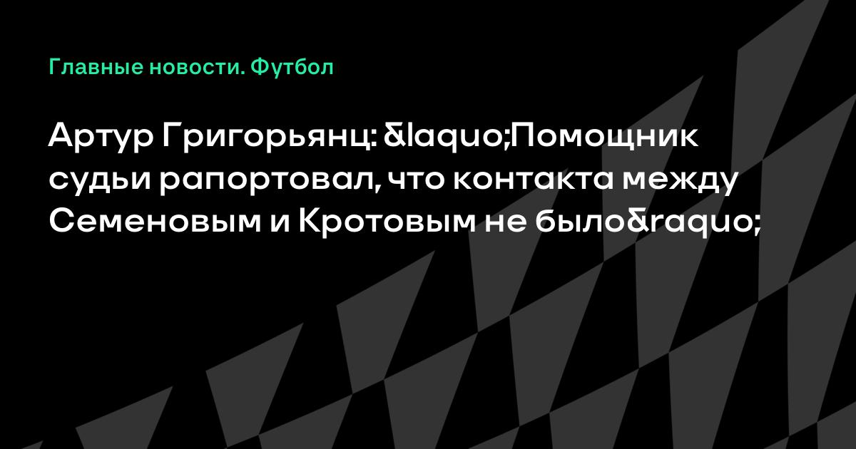Артур Григорьянц: «Помощник судьи рапортовал, что контакта между Семеновым и Кротовым не было»