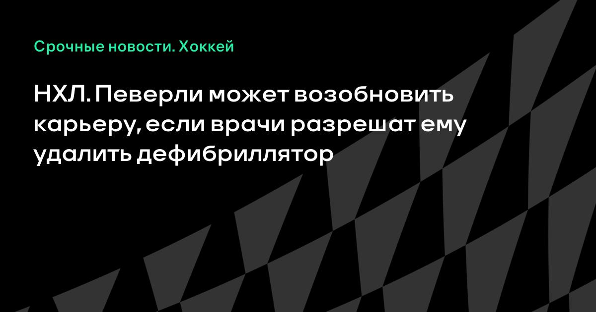 НХЛ. Певерли может возобновить карьеру, если врачи разрешат ему удалить дефибриллятор