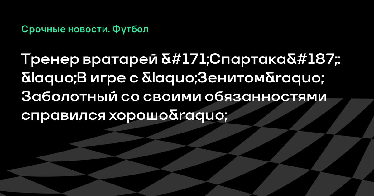 Тренер вратарей «Спартака»: «В игре с «Зенитом» Заболотный со своими обязанностями справился хорошо»