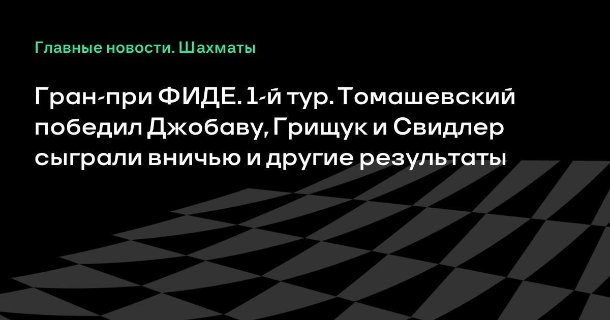 Гран-при ФИДЕ. 1-й тур. Томашевский победил Джобаву, Грищук и Свидлер сыграли вничью и другие результаты