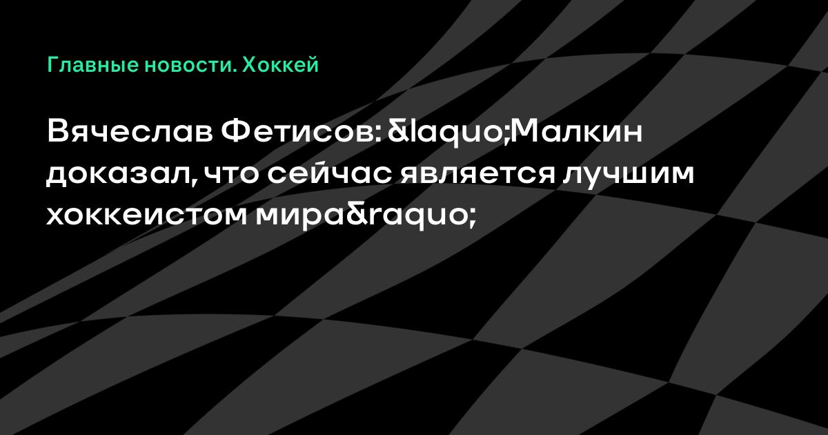 Вячеслав Фетисов: «Малкин доказал, что сейчас является лучшим хоккеистом мира»