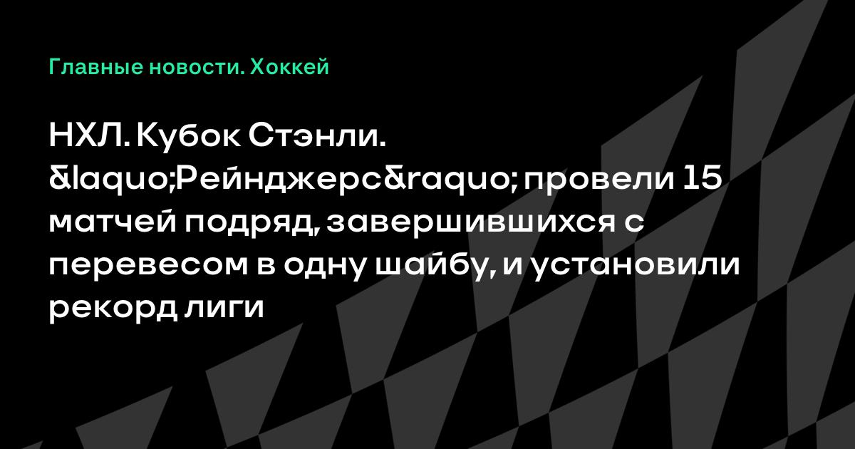 НХЛ. Кубок Стэнли. «Рейнджерс» провели 15 матчей подряд, завершившихся с перевесом в одну шайбу, и установили рекорд лиги