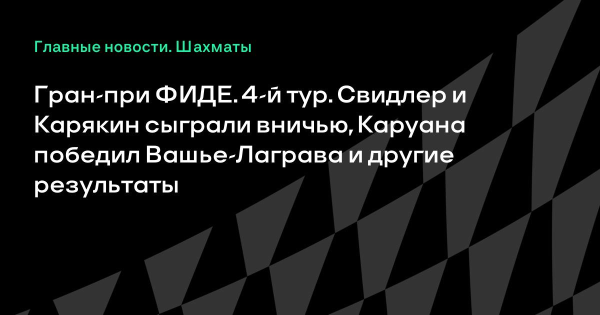 Гран-при ФИДЕ. 4-й тур. Свидлер и Карякин сыграли вничью, Каруана победил Вашье-Лаграва и другие результаты
