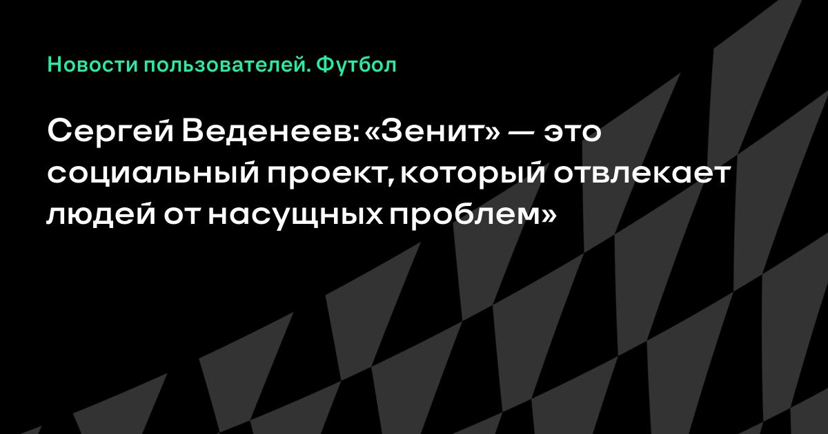 Сергей Веденеев: «Зенит» — это социальный проект, который отвлекает людей от насущных проблем»