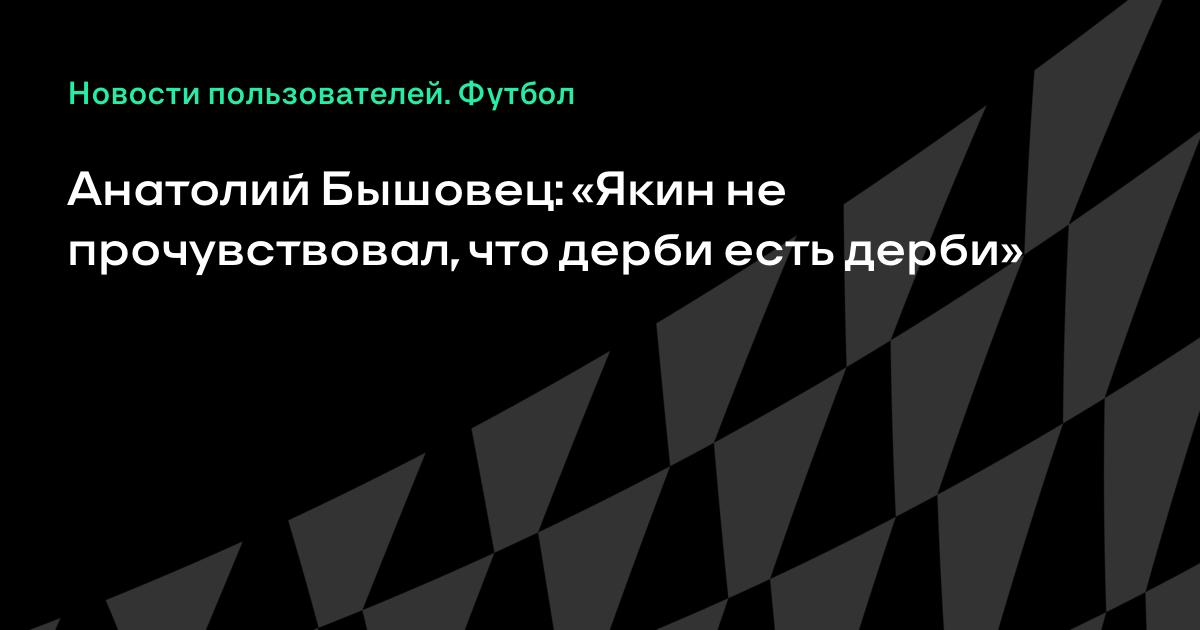 Анатолий Бышовец: «Якин не прочувствовал, что дерби есть дерби»