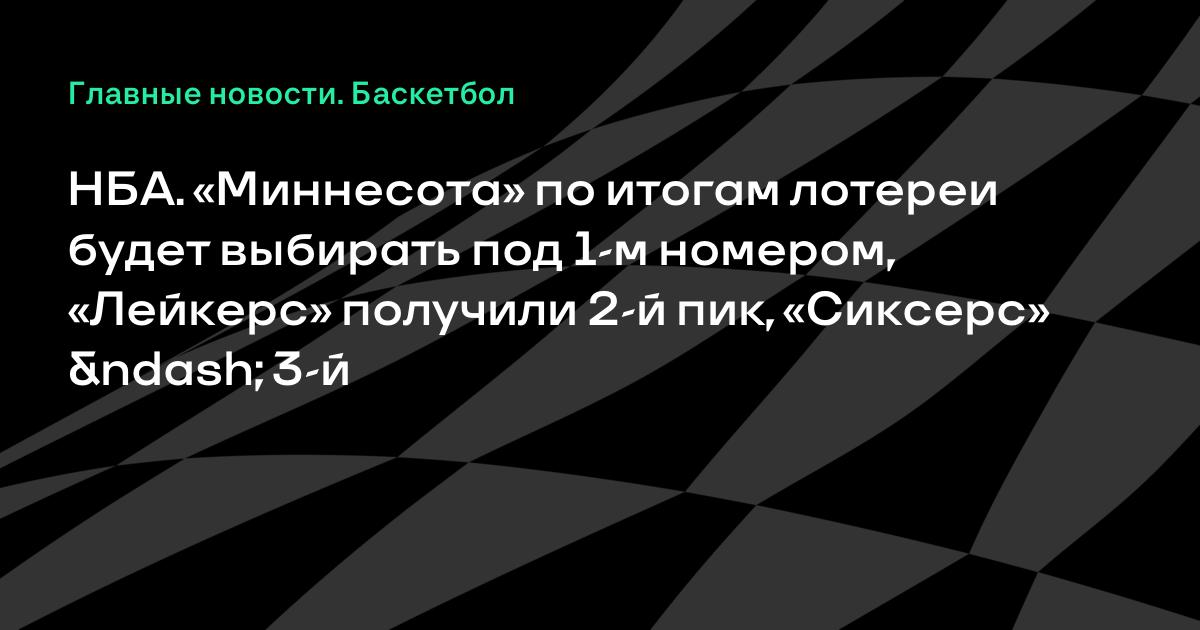 НБА. «Миннесота» по итогам лотереи будет выбирать под 1-м номером, «Лейкерс» получили 2-й пик, «Сиксерс» – 3-й