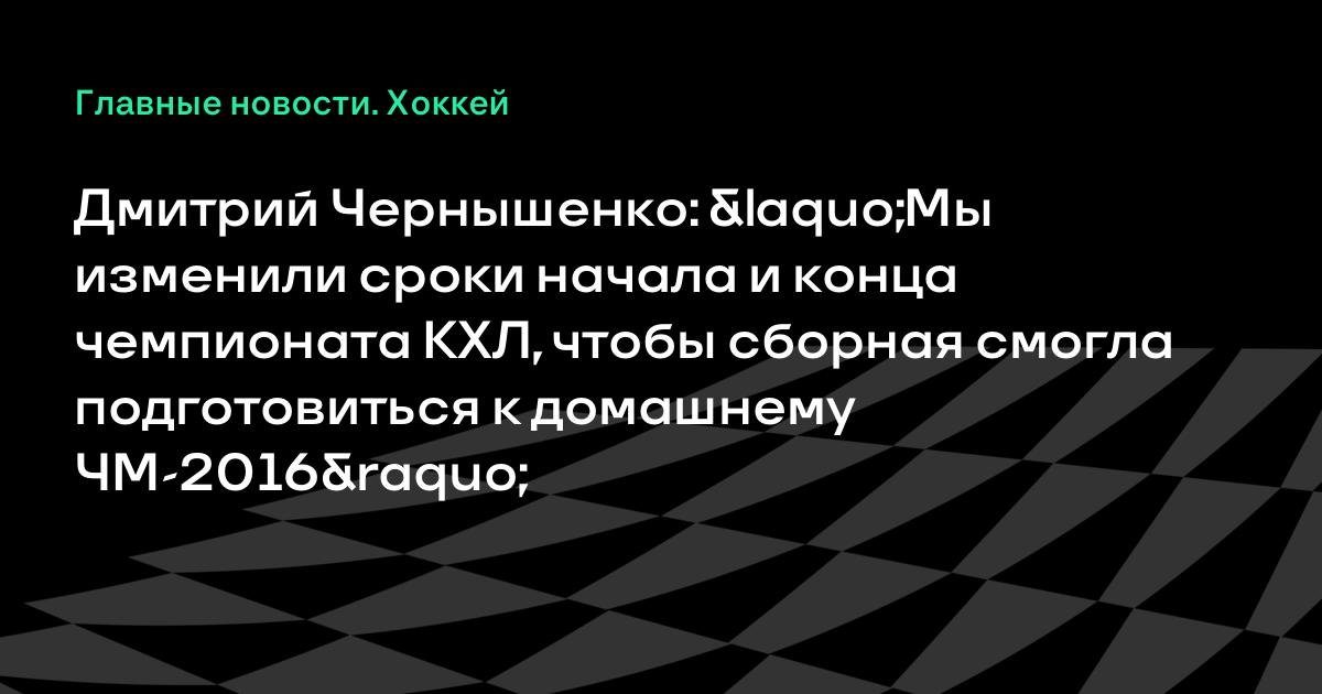 Дмитрий Чернышенко: «Мы изменили сроки начала и конца чемпионата КХЛ, чтобы сборная смогла подготовиться к домашнему ЧМ-2016»