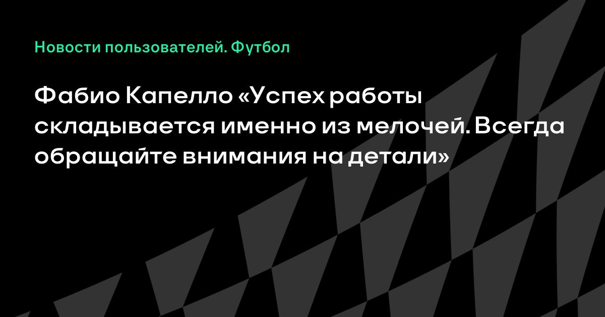 Фабио Капелло «Успех работы складывается именно из мелочей. Всегда обращайте внимания на детали»