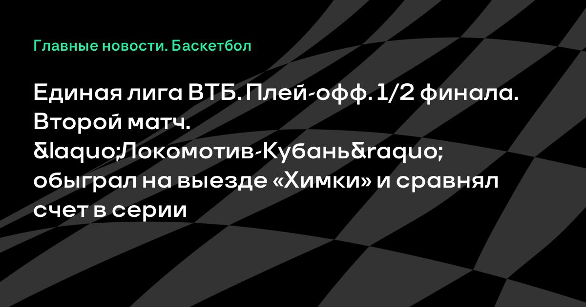Единая лига ВТБ. Плей-офф. 1/2 финала. Второй матч. «Локомотив-Кубань» обыграл на выезде «Химки» и сравнял счет в серии
