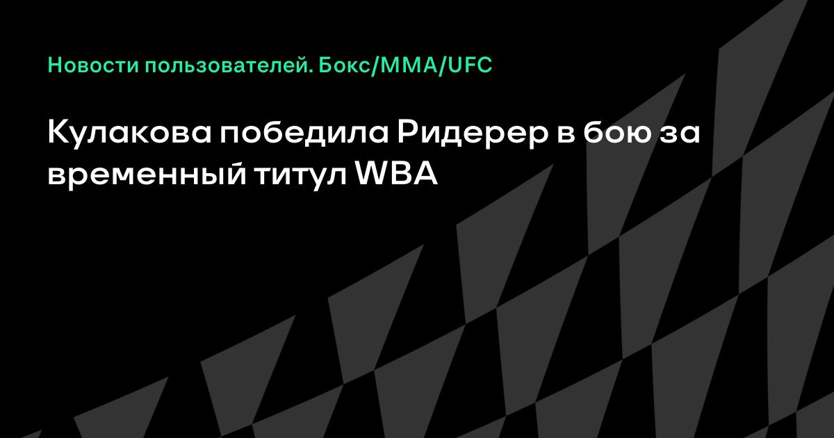 Последний раз Кулакова выходила на ринг 1 июня в бою с полновесной чемпионкой по версии WBA аргентинкой Анной Лаурой Эстече, и их бой завершился вничью, после чего организация настояла на реванше, этот бой уже запланирован на сентябрь. В активе 32-летней россиянки теперь 10 побед (одна — нокаутом). Ридерер проиграла третий поединок при 15 победах и одном ничейном исходе.
