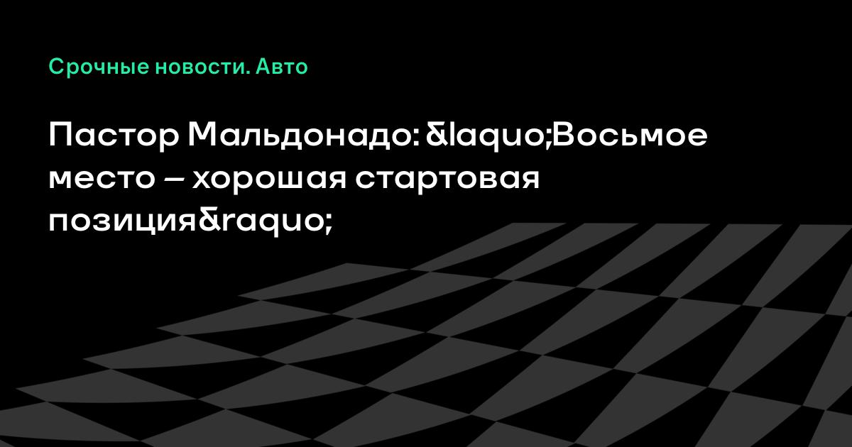 Восьмое место – хорошая стартовая позиция. У меня есть предчувствие, что гонка сложится хорошо для нас», – цитирует Мальдонадо Nextgen-Auto со ссылкой на пресс-службу «Лотуса».