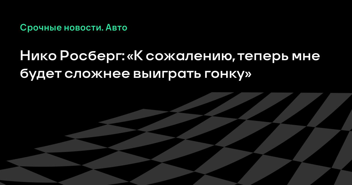 Нико Росберг: «К сожалению, теперь мне будет сложнее выиграть гонку»