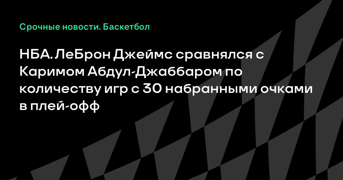 Форвард «Кливленда» ЛеБрон Джеймс в воскресенье сравнялся с легендарным центровым Каримом Абдул-Джаббаром по количеству матчей с 30 и более набранными очками в рамках плей-офф.