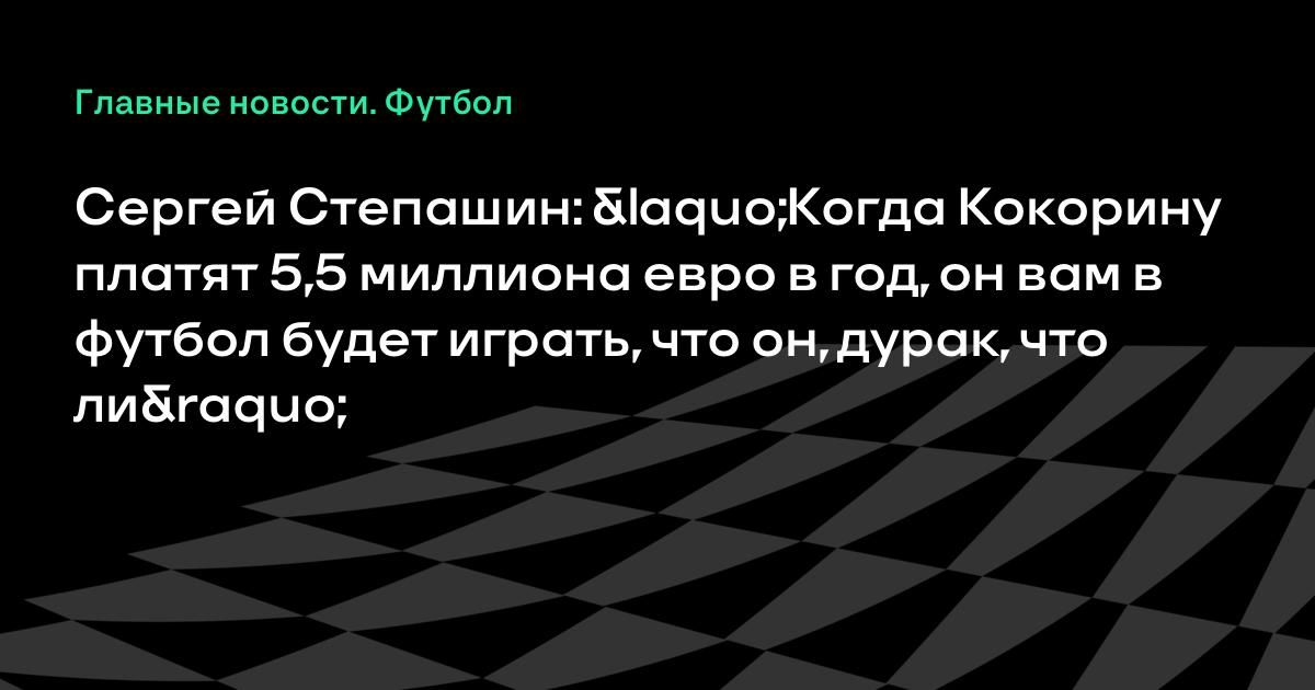 Сергей Степашин: «Когда Кокорину платят 5,5 миллиона евро в год, он вам в футбол будет играть, что он, дурак, что ли»