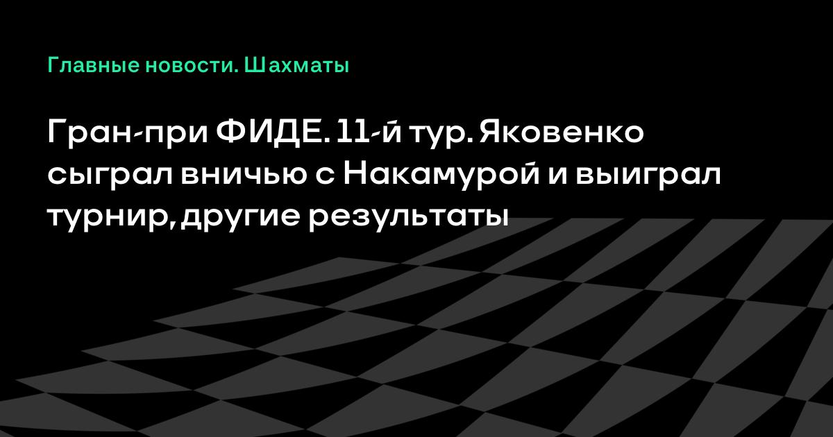 Гран-при ФИДЕ. 11-й тур. Яковенко сыграл вничью с Накамурой и выиграл турнир, другие результаты