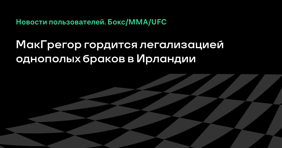 Ирландия — первая страна, которая легализовала однополые браки путем публичного голосования и «Ноториус» считает, что это отличный повод для гордости. МакГрегор непременул сообщить об этом всему миру через социальную сеть Твиттер.