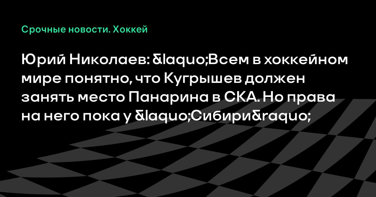 Юрий Николаев: «Всем в хоккейном мире понятно, что Кугрышев должен занять место Панарина в СКА. Но права на него пока у «Сибири»