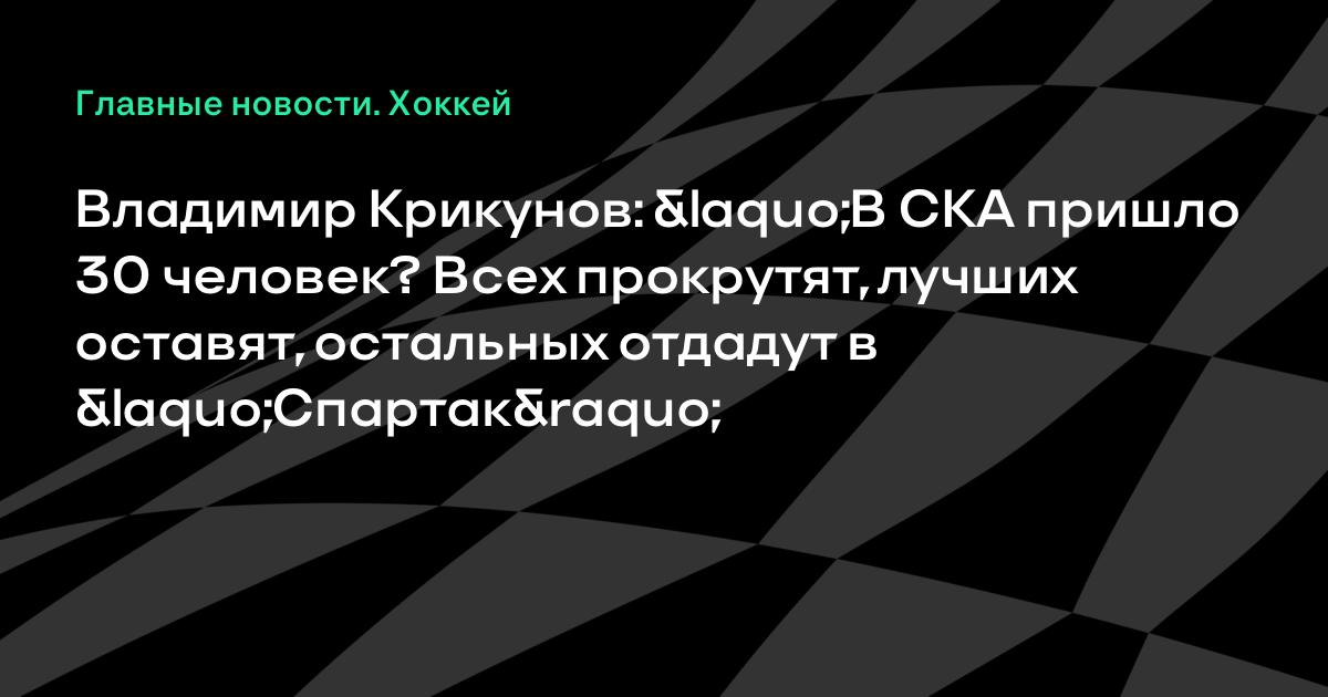 Владимир Крикунов: «В СКА пришло 30 человек? Всех прокрутят, лучших оставят, остальных отдадут в «Спартак»