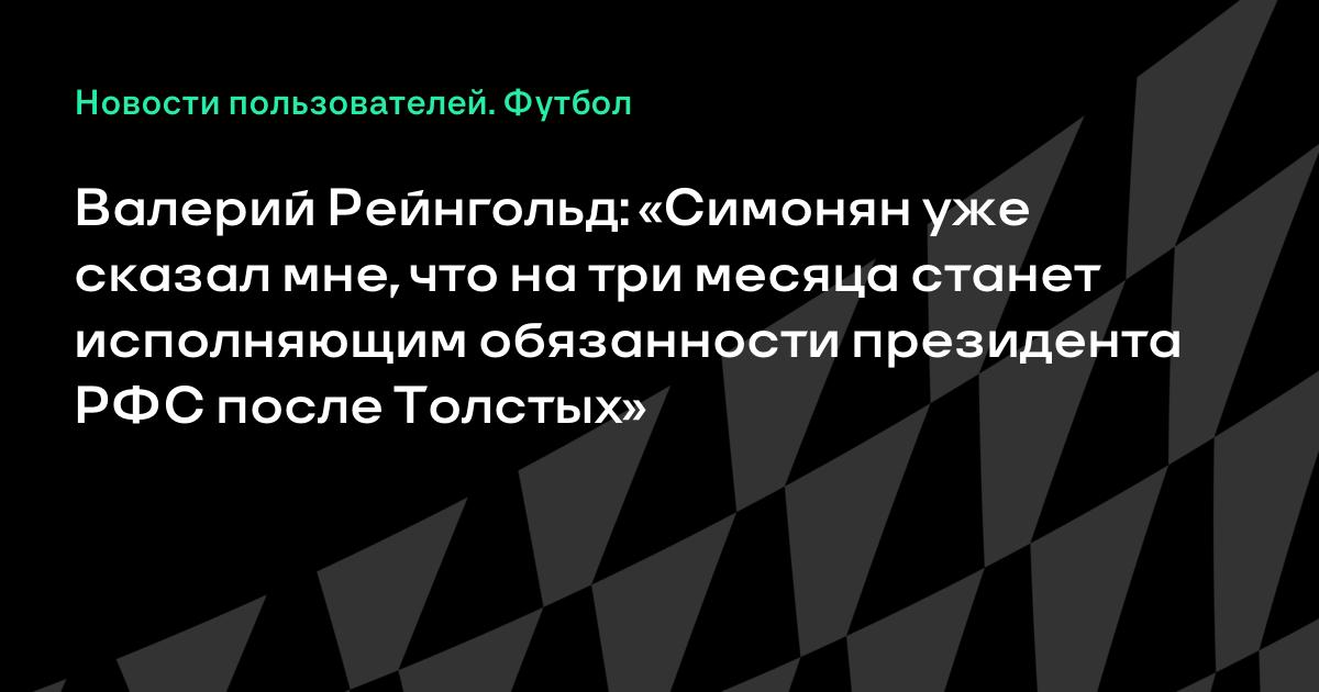 Валерий Рейнгольд: «Симонян уже сказал мне, что на три месяца станет исполняющим обязанности президента РФС после Толстых»
