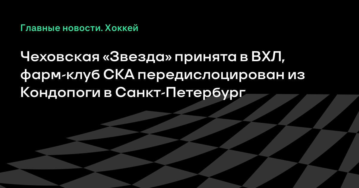 Чеховская «Звезда» принята в ВХЛ, фарм-клуб СКА передислоцирован из Кондопоги в Санкт-Петербург