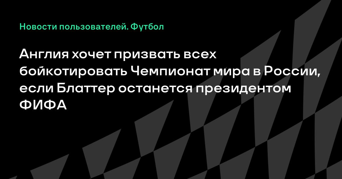 Глава Футбольной ассоциации Англии (FA) Грег Дайк поведал «Sky Sports News», что его страна готова бойкотировать Чемпионат мира в России, если Йозеф Блаттер останется президентом ФИФА.