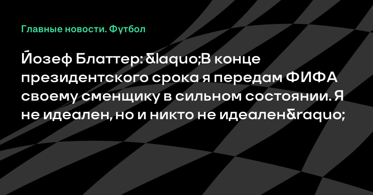 Йозеф Блаттер: «В конце президентского срока я передам ФИФА своему сменщику в сильном состоянии. Я не идеален, но и никто не идеален»