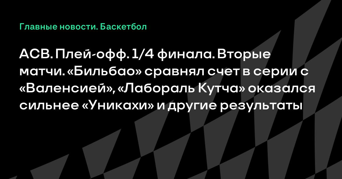 ACB. Плей-офф. 1/4 финала. Вторые матчи. «Бильбао» сравнял счет в серии с «Валенсией», «Лабораль Кутча» оказался сильнее «Уникахи» и другие результаты