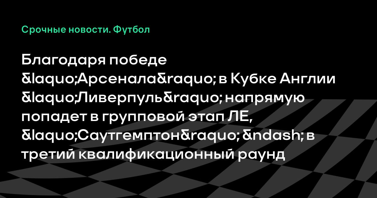 Благодаря победе «Арсенала» в Кубке Англии «Ливерпуль» напрямую попадет в групповой этап ЛЕ, «Саутгемптон» – в третий квалификационный раунд