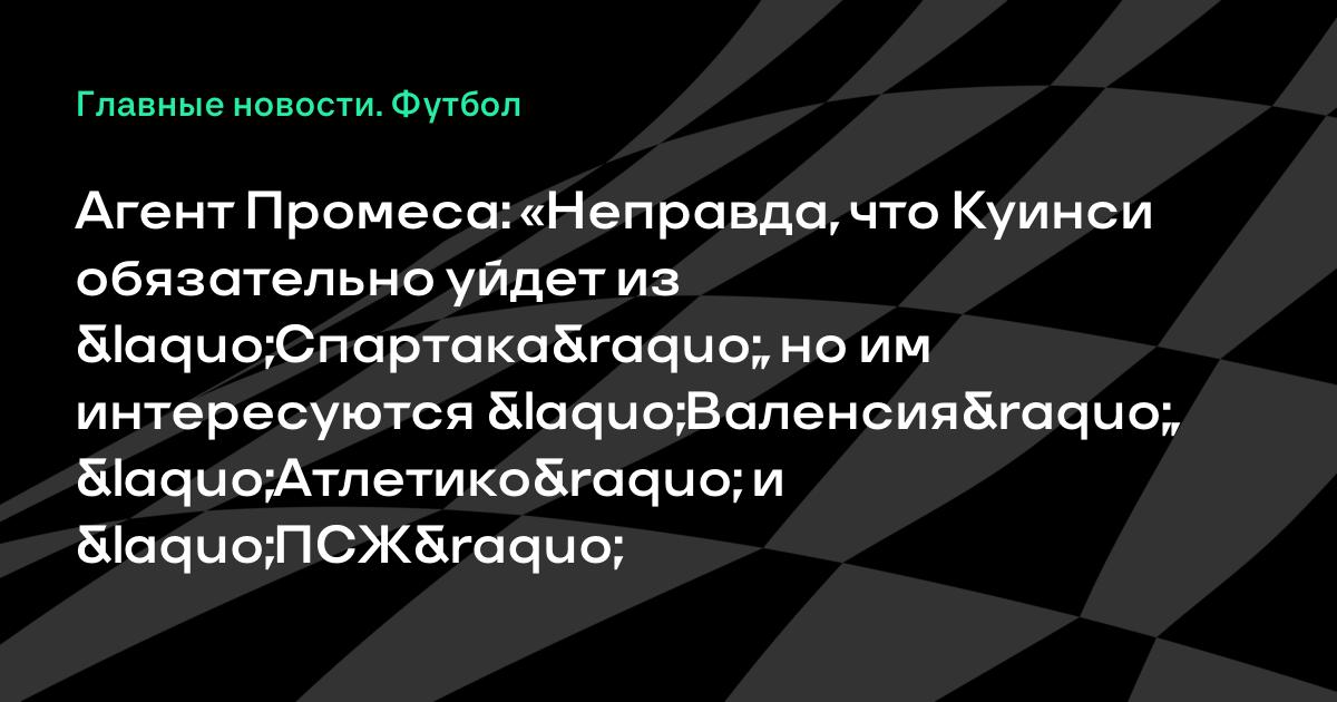 «Валенсия», «Атлетико» и «ПСЖ» серьезно следят за Куинси. Он впечатлил их в этом сезоне. Неправда, что летом Промес обязательно уйдет из «Спартака».